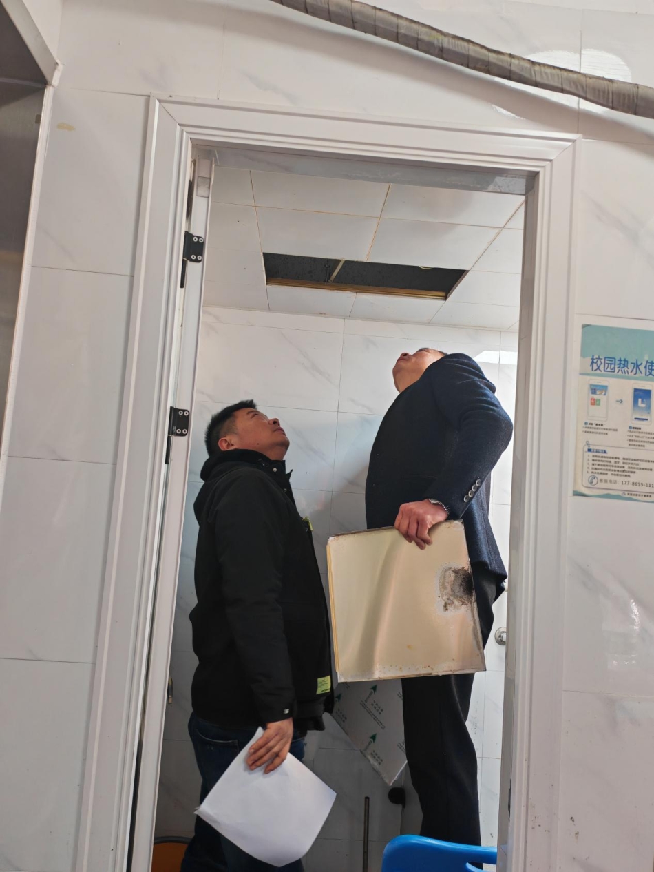 根据前期宿舍漏水报修情况,1月15日,校园规划与建设处组织施工单位到18栋学生宿舍1-3楼查勘现场。此前,施工单位已完成了对18栋学生宿舍4-7楼漏水报修寝室的维修,即日起对1-3楼漏水寝室开展维修工作。